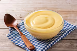 Bake the cream in a bain-marie for about 45 minutes (cooking time may vary depending on the oven), until it is set.