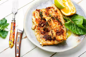 Brush the fillets with olive oil using a silicone brush and add freshly squeezed lemon juice.