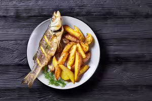 Place the two fish on the potatoes.