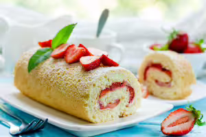 Spread the jam lengthwise and wrap the cake.