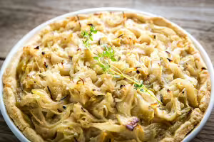 When the onions have blonded, add the cream and egg mixture (excluding fire)