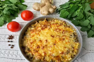 Take the gratin out of the oven when the top is golden golden.