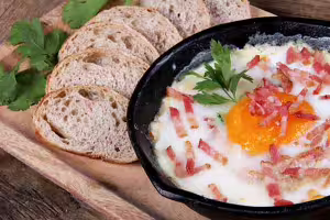 Put the cook eggs in a double boiler for 6 to 8 minutes
